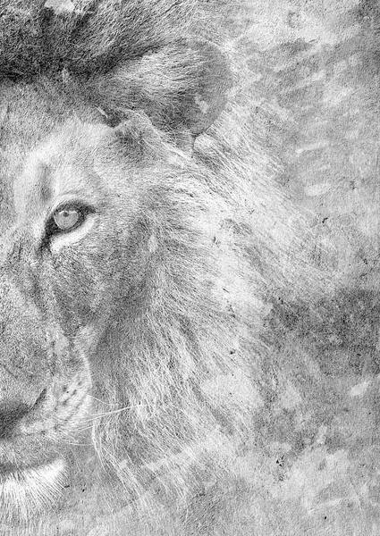 "Simba part 2" poster by Linnea Frank. A striking blend of raw power and subtle elegance, this artwork captures the essence of a lion's gaze. The textured monochrome palette evokes a sense of wilderness and freedom, inviting viewers to confront their own challenges. With each brushstroke, the lion's fierce spirit shines through, reminding us to face our dangers head-on. Perfect for those who appreciate the wild beauty of Africa, this piece is a bold statement for any space.